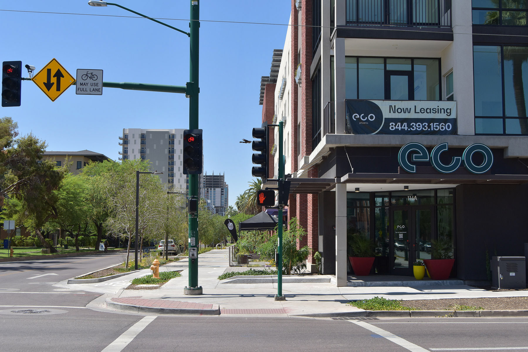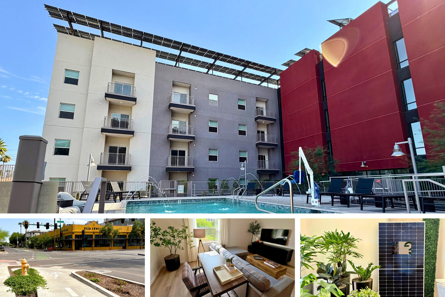 EcoPhx was designed around community amenities to ground residents in the Roosevelt Historic District, such as the Roosevelt Mini Park across the street and the dedicated bike lane on 3rd Avenue. True to its name, the project also boasts a plethora of innovative green features, such as rooftop solar panels. (Photos: Taylor Costello)